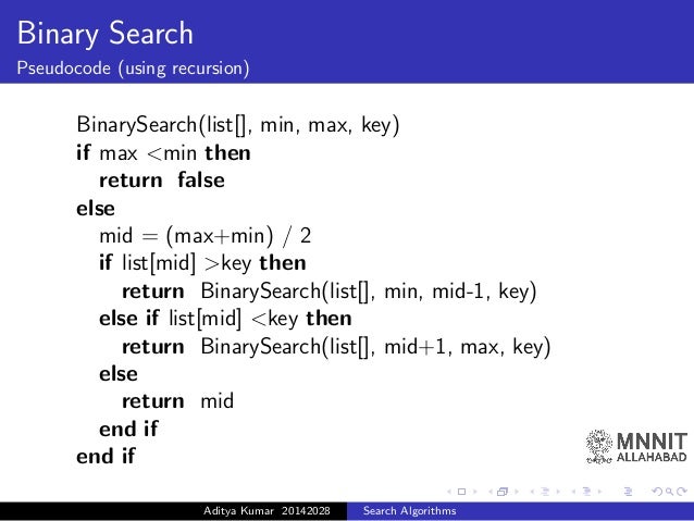 - Here, we use a loop to divide the search space in half after each comparison of a d